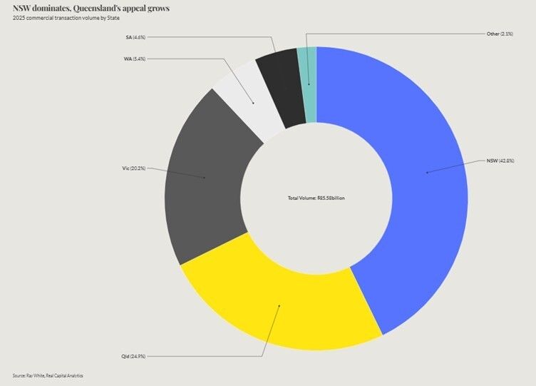 According to Ray White Commercial research, total transaction value reached $85.6 billion, while the average transaction size lifted 24.6% to $9.49 million, well beyond inflation alone.