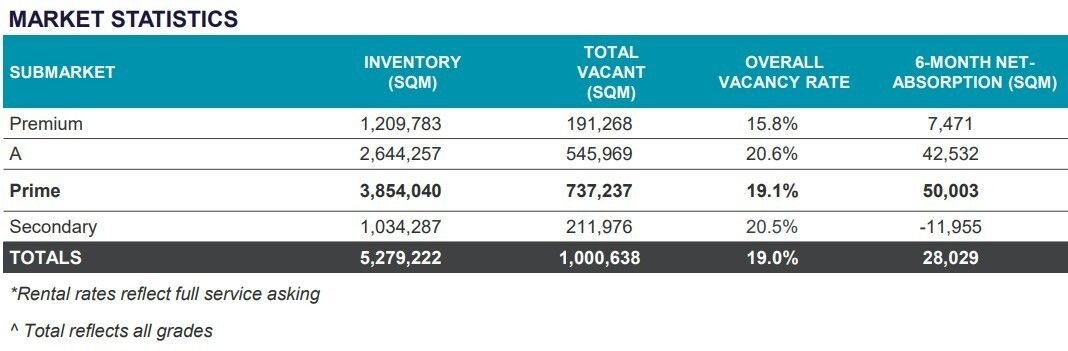 But the real story is in the secondary-grade stock, where vacancy sits at 20.5% and net absorption is negative.